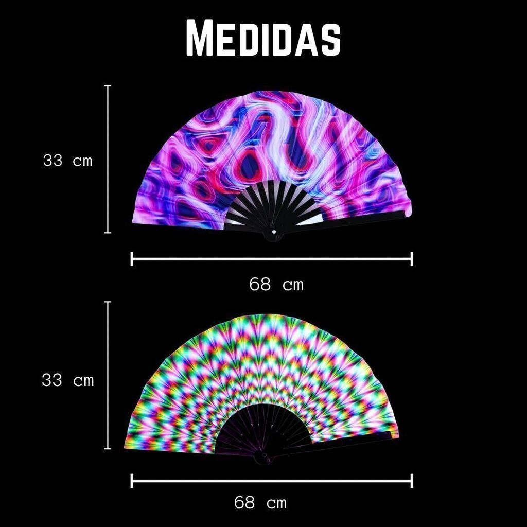 🔥 Abanicos edición especial 🔥  Nuestros abanicos son fluorescentes (brillan con luz UV) 🤩✨ Las medidas son 33 cm alto x 68cm de largo 🪭  🎭 Perfectos para festivales y raves. Te encantarán. 😍